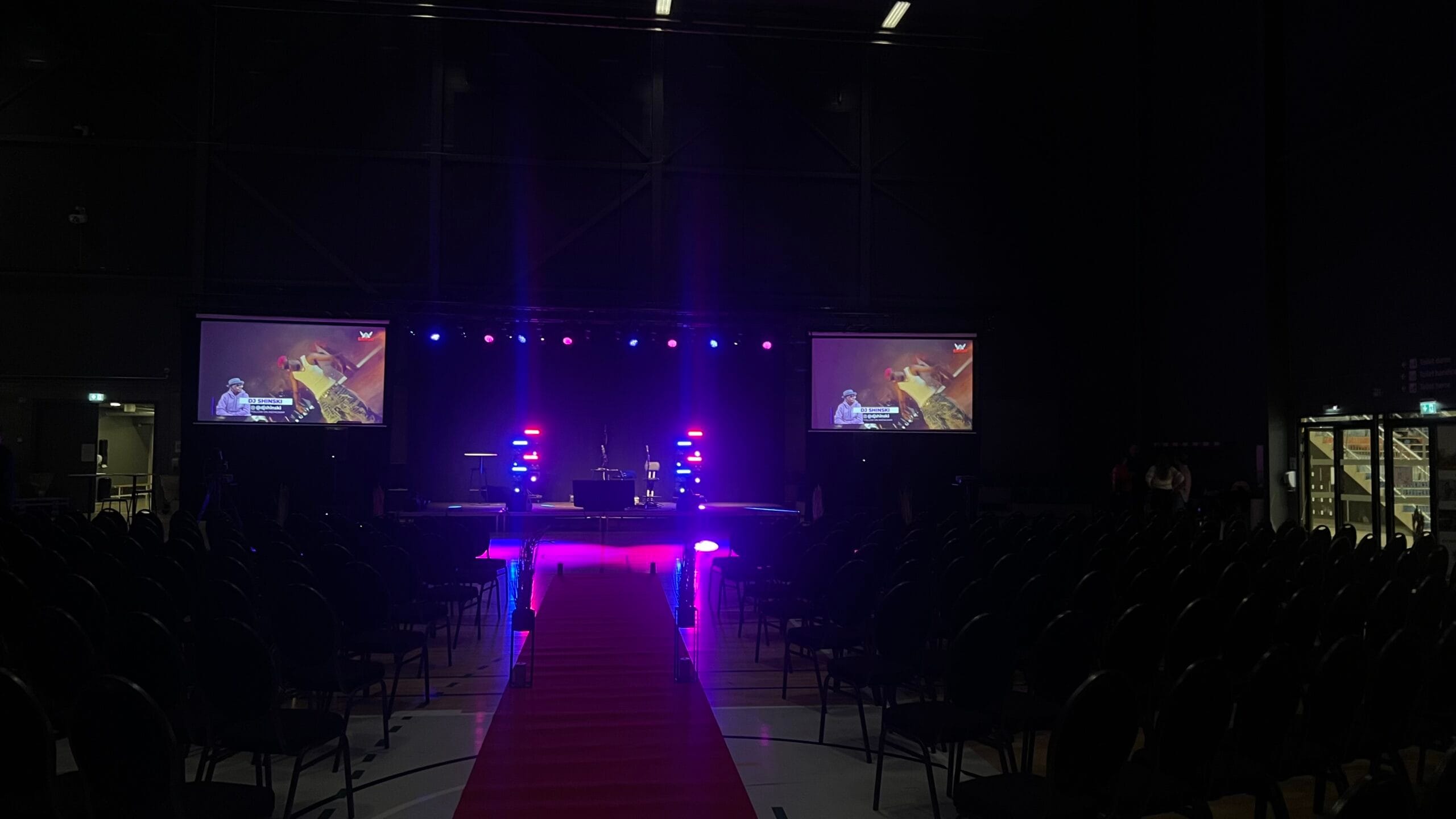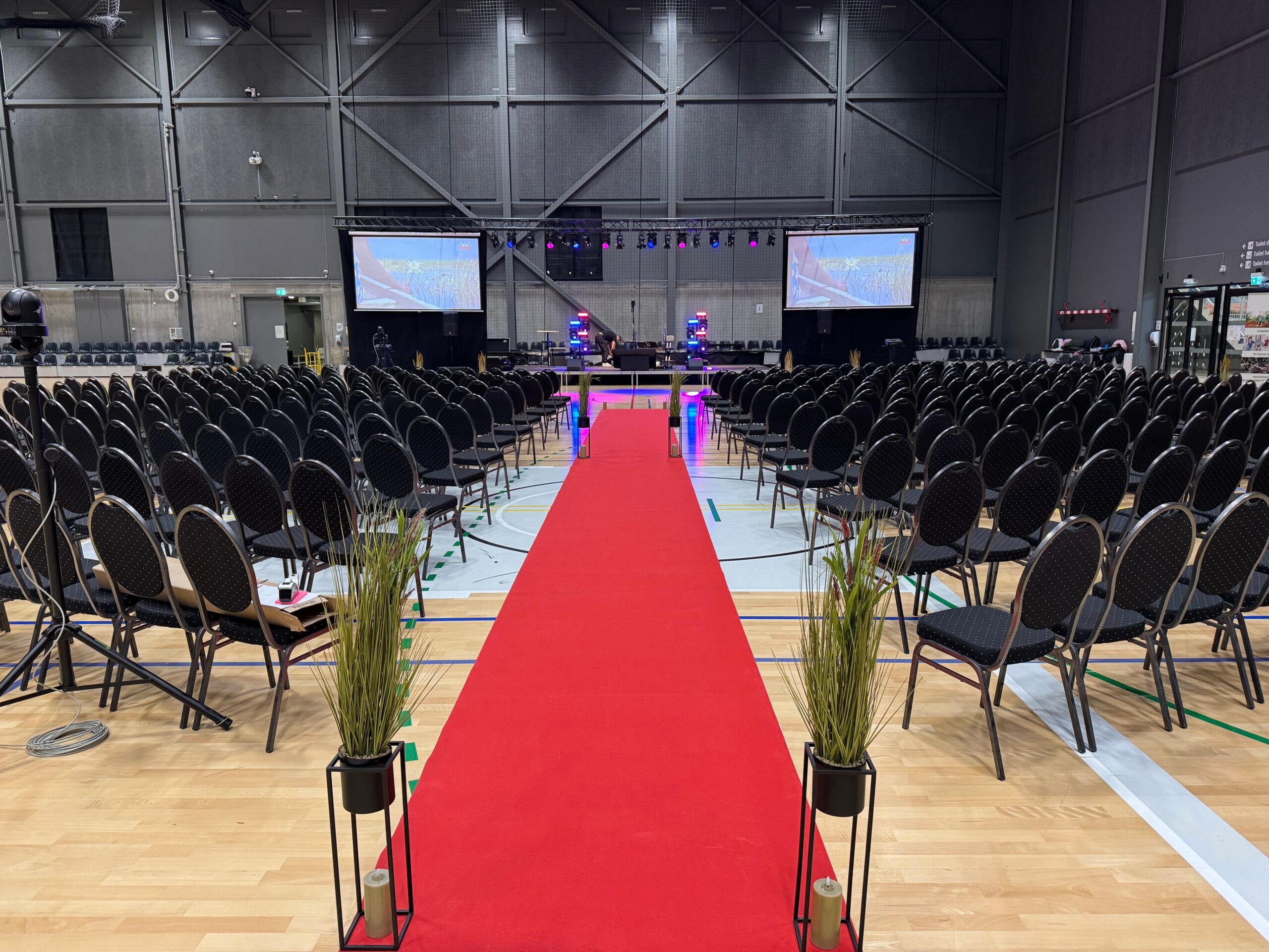 Vi leverer lyd, lys, skærme og LED-vægge, der sikrer tydelige præsentationer og et visuelt stærkt udtryk.