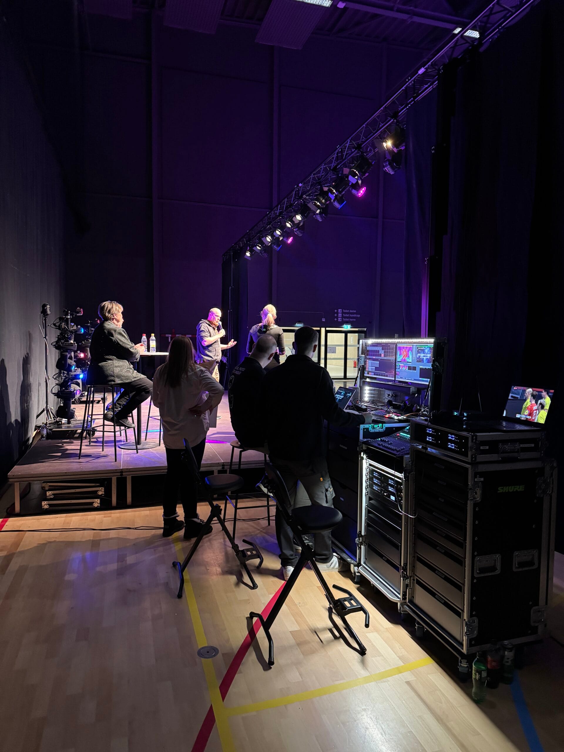 Lyd, lys og visuelle elementer sammensættes, så brand og budskab understøttes professionelt.